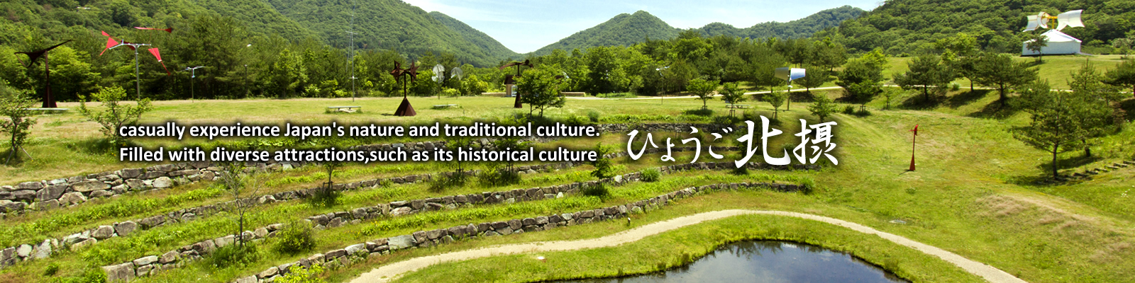 The Hokusetsu region of Hyogo is composed of four cities and one town: Itami City, which is the gateway to Osaka International Airport (Itami Airport), Takarazuka City, Kawanishi City, Sanda City, and Inagawa Town. In this region, which is also close to such large cities as Osaka and Kobe, mature urban areas and mountainous and/or agricultural areas surrounded by rich nature coexist. Filled with diverse attractions, such as its historical culture as the birthplace of the Seiwa Genji, food & drink culture, including its distinction as the birthplace of sake, townscape culture in which the atmosphere of old roads has been retained, and satoyama culture, which is considered Japan’s original landscape, visitors can casually experience Japan’s nature and traditional culture. Please visit Hyogo Hokusetsu.